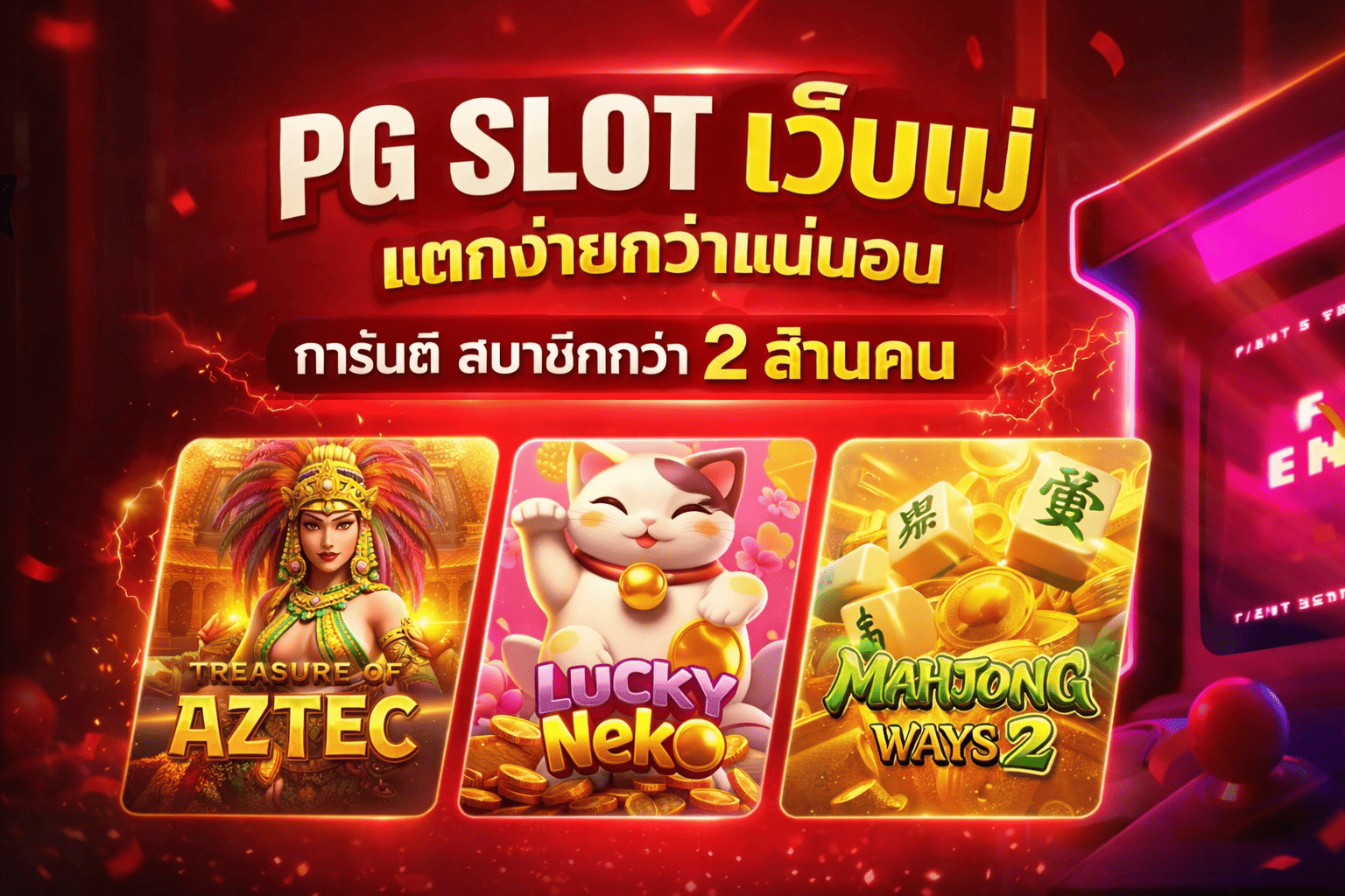 - เข้าถึงเกมสล็อตลิขสิทธิ์แท้จาก PG SLOT มากกว่า 100 เกม